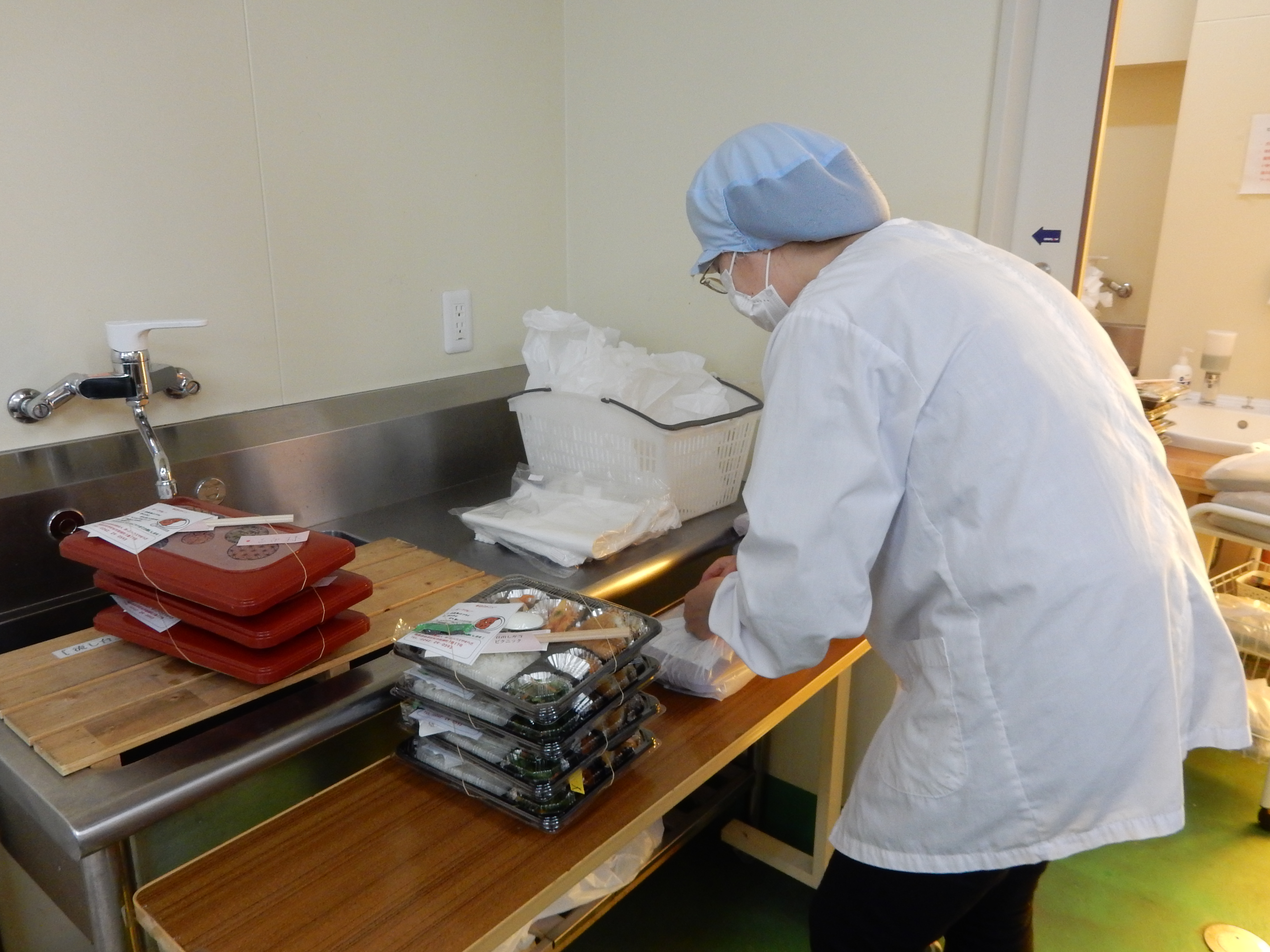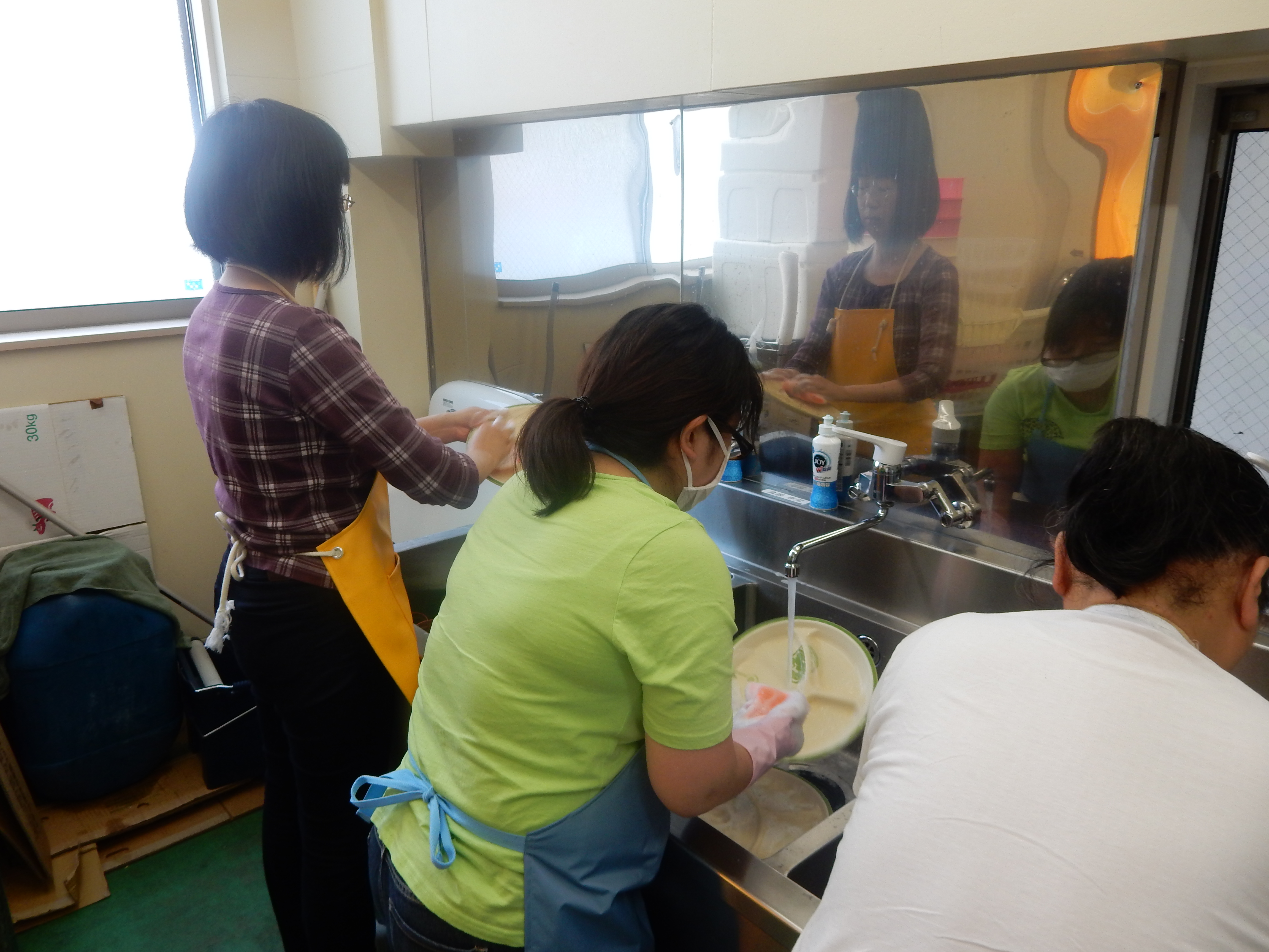 回収された容器の洗浄をメンバーが担っています。丁寧に清潔に配慮して毎日行っています。