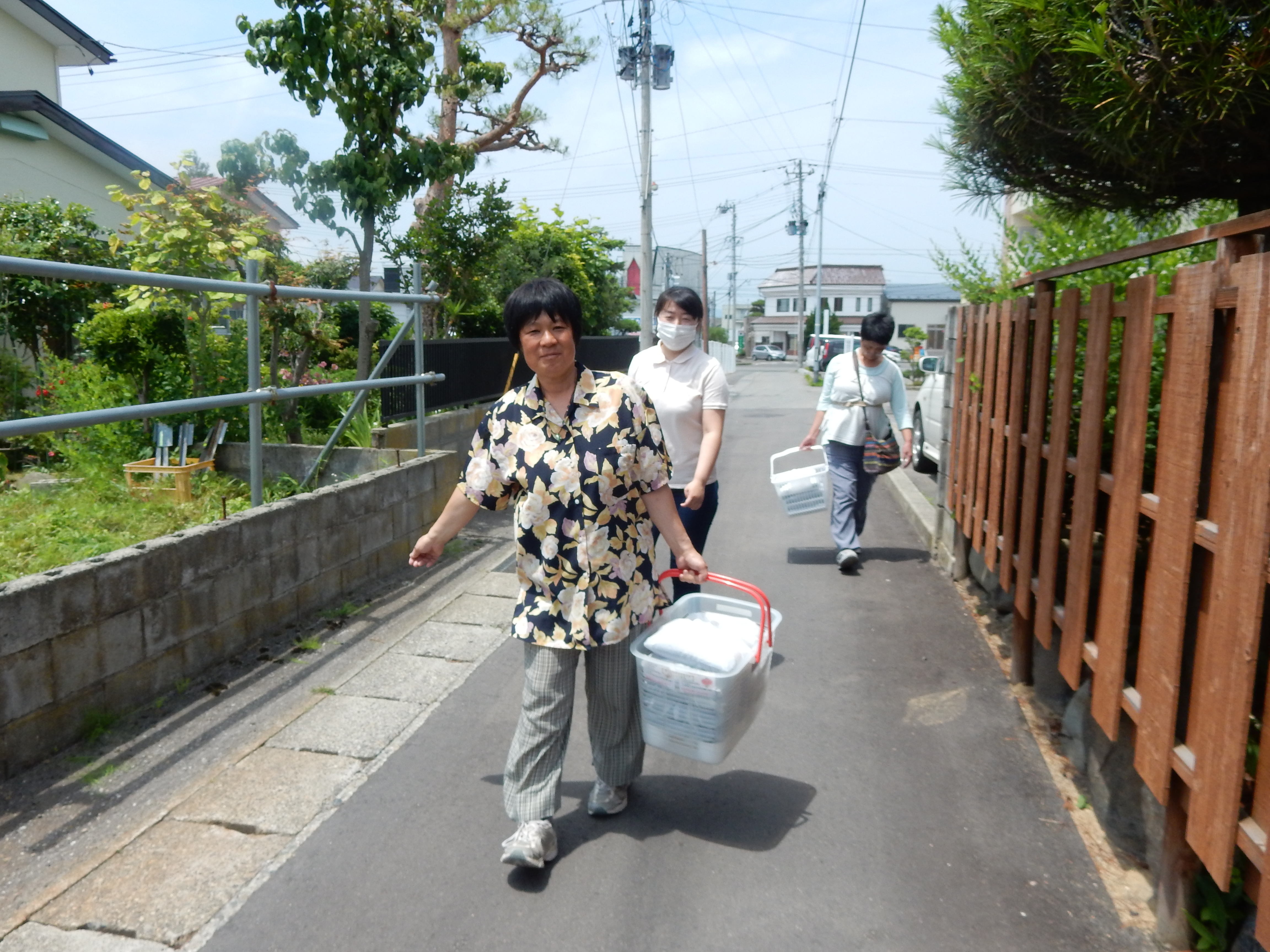 メンバー中心に配達を行っています。お弁当配達は笑顔で心のこもった挨拶の練習になります。